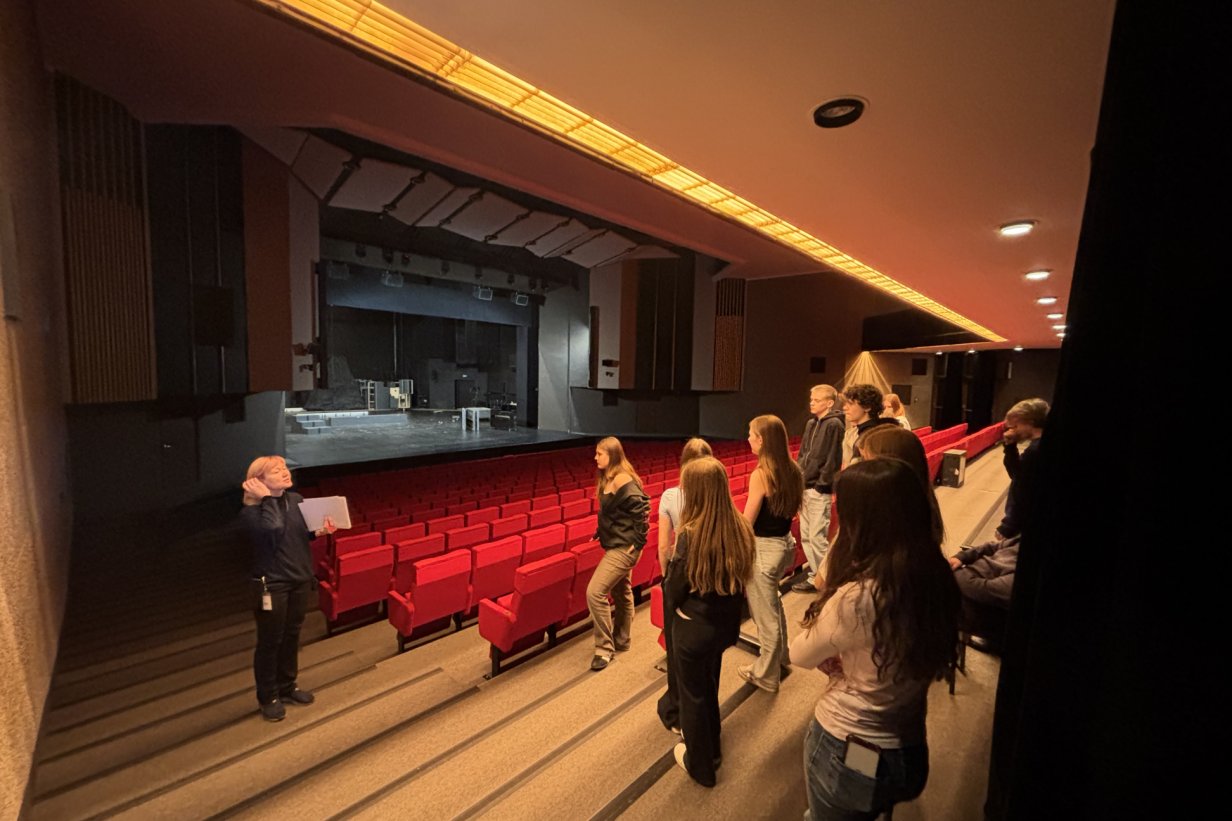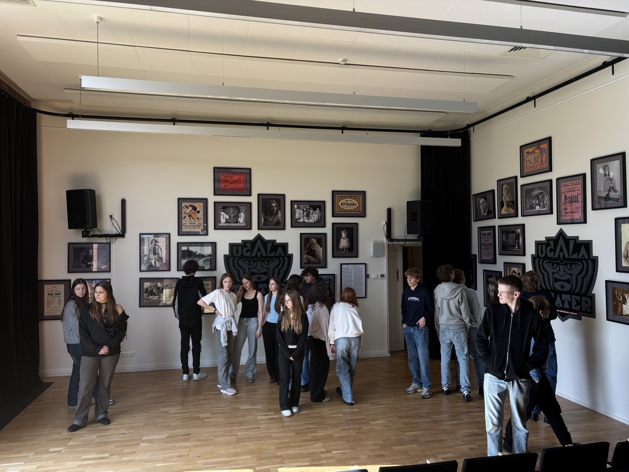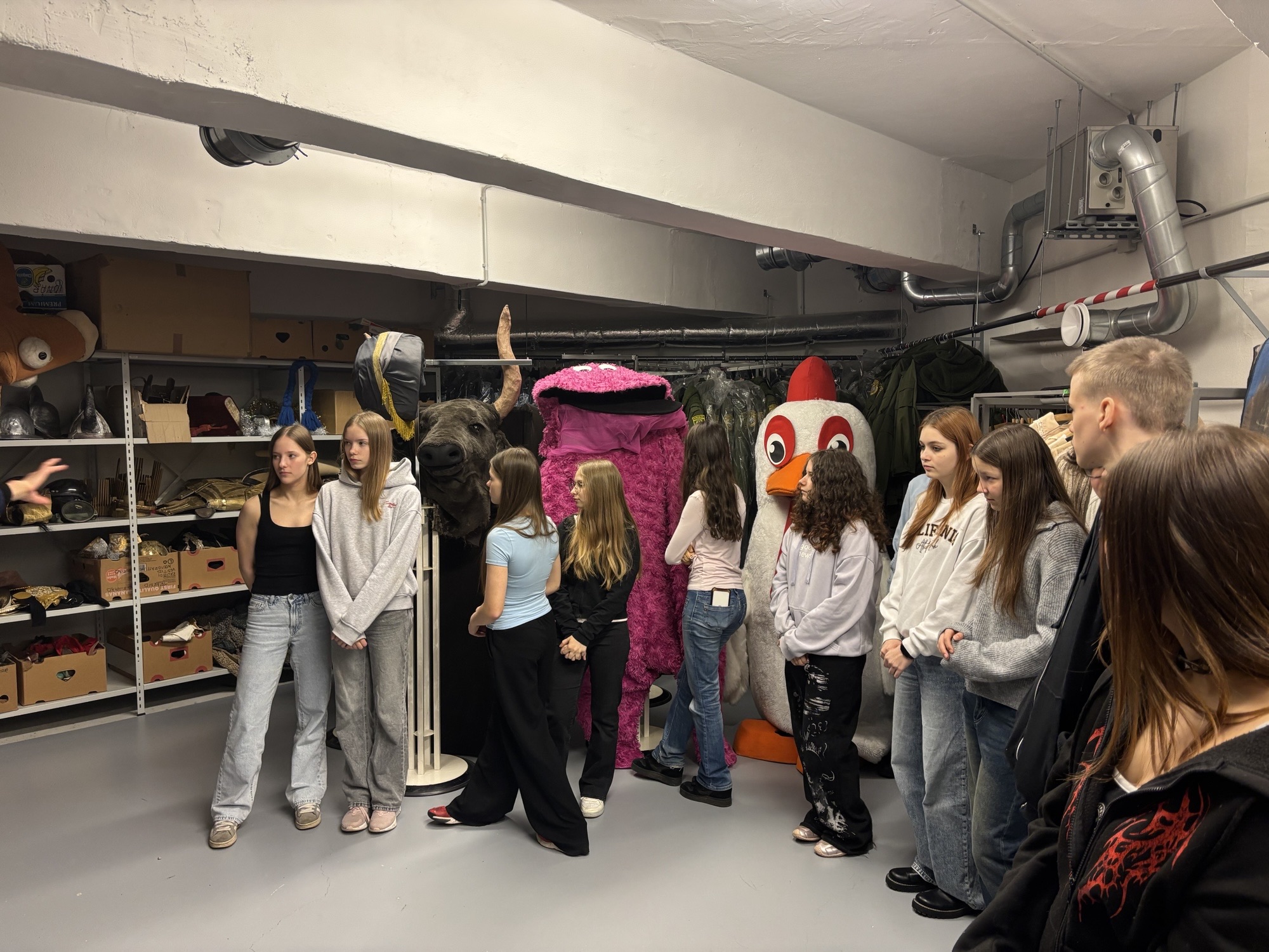 Saime teada, et Ugala teatris on käimas 106. hooaeg. Nägime rekvisiitide ruume, kostüümi ruumi, lava maha võtmis ja lavameistrite tööd.