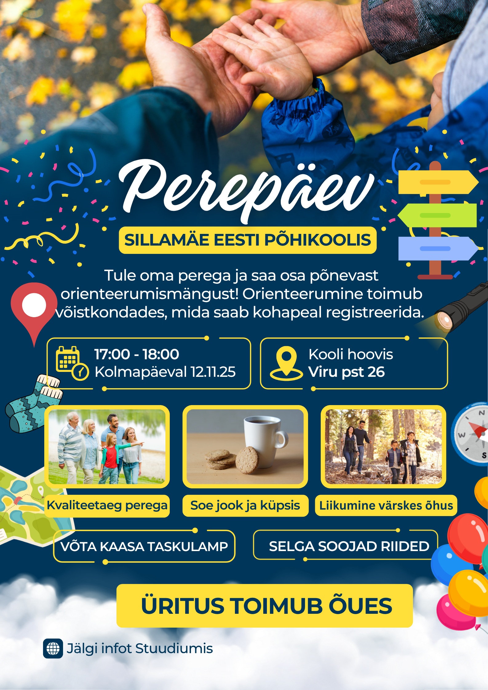 Päeva jooksul ootab teid põnev orienteerumismäng, soe jook ja küpsis ning palju rõõmu ühistest hetkedest.