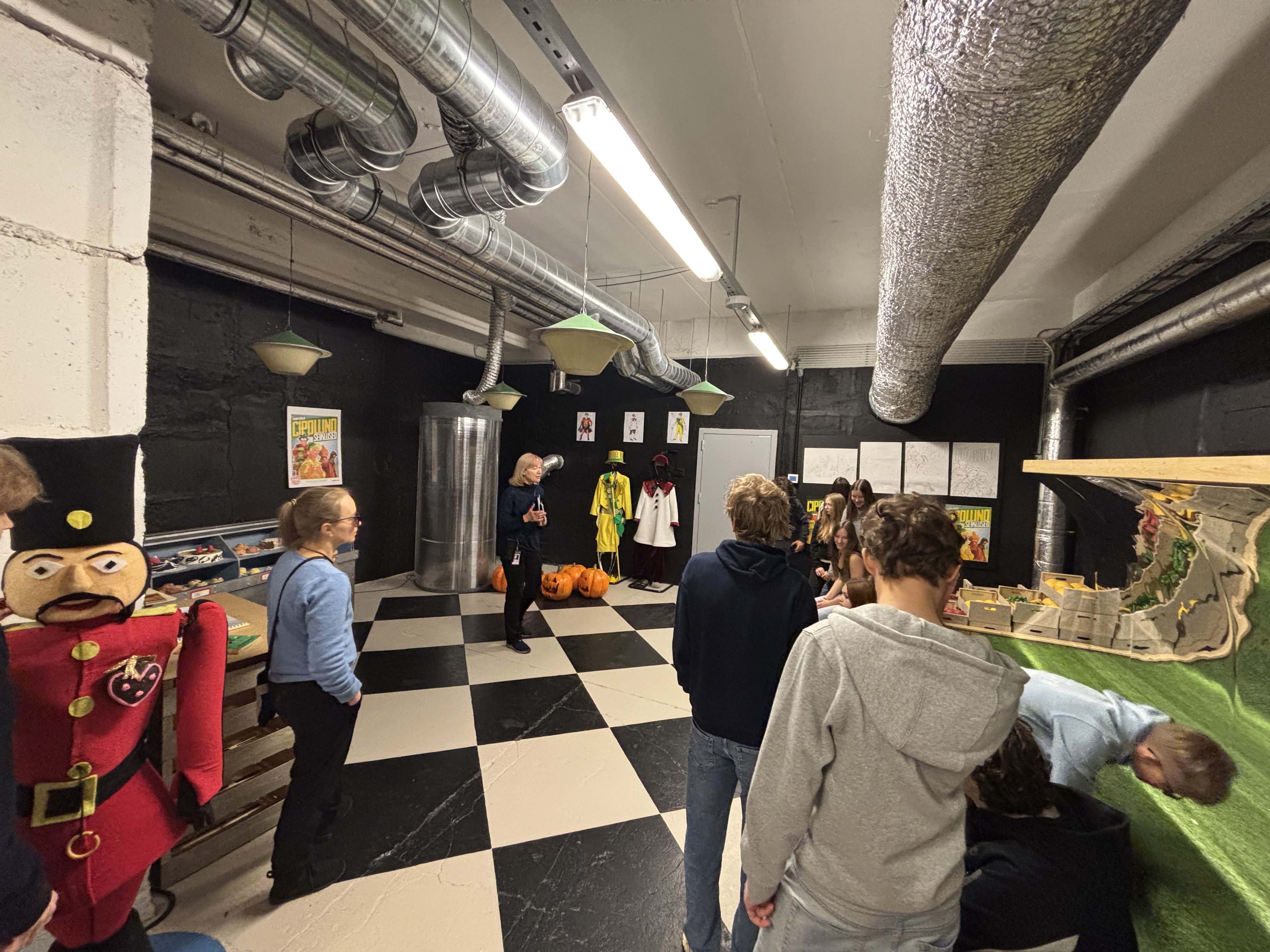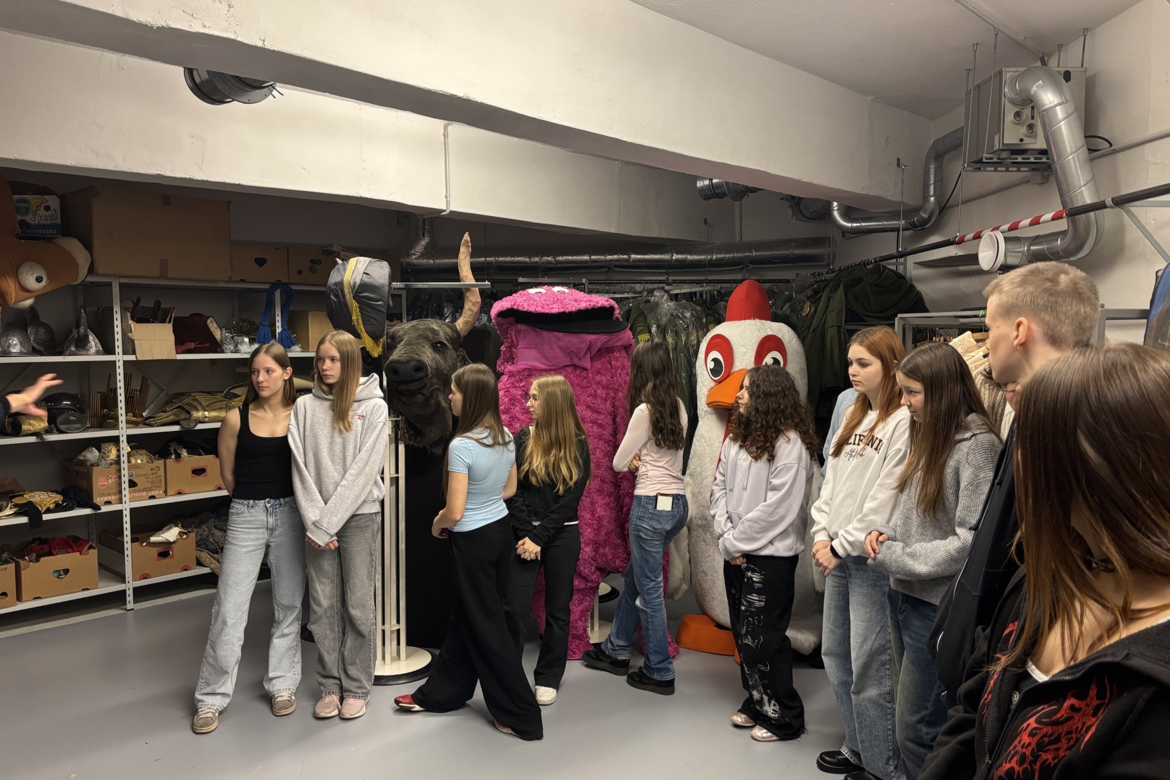 Saime teada, et Ugala teatris on käimas 106. hooaeg. Nägime rekvisiitide ruume, kostüümi ruumi, lava maha võtmis ja lavameistrite tööd.