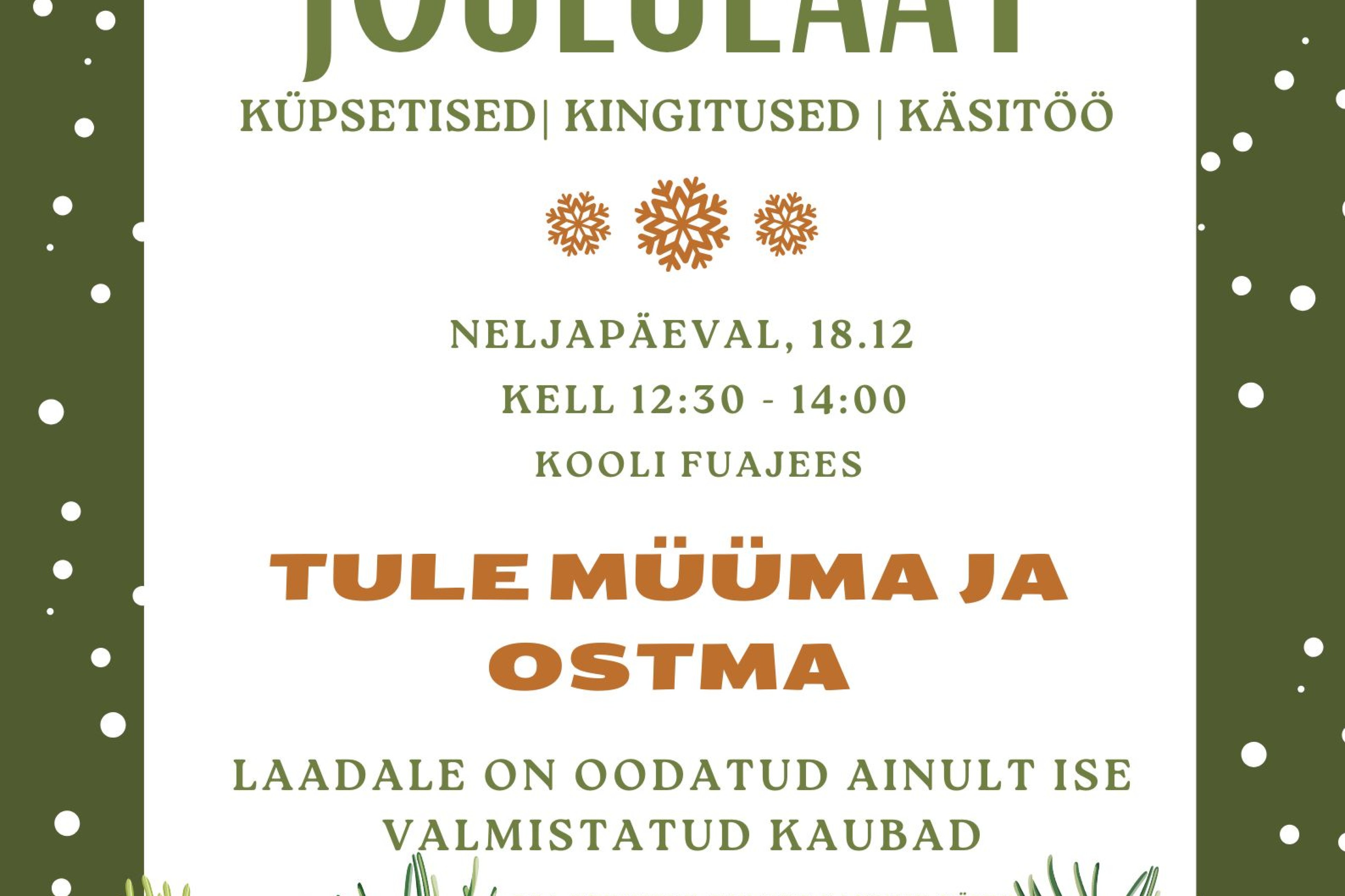 Jõululaadal saab osta ja müüa isetehtud küpsetisi ja käsitööd 🎁